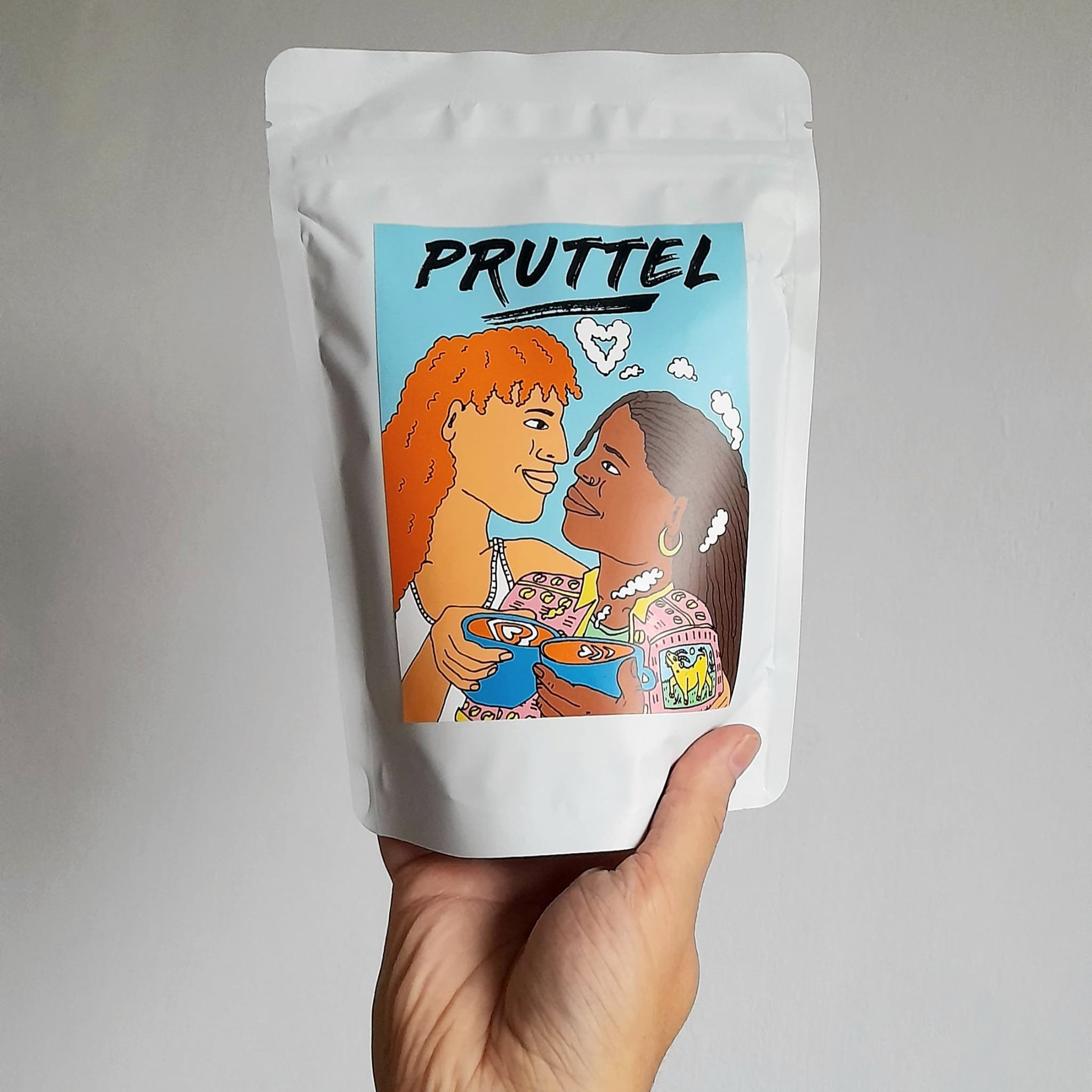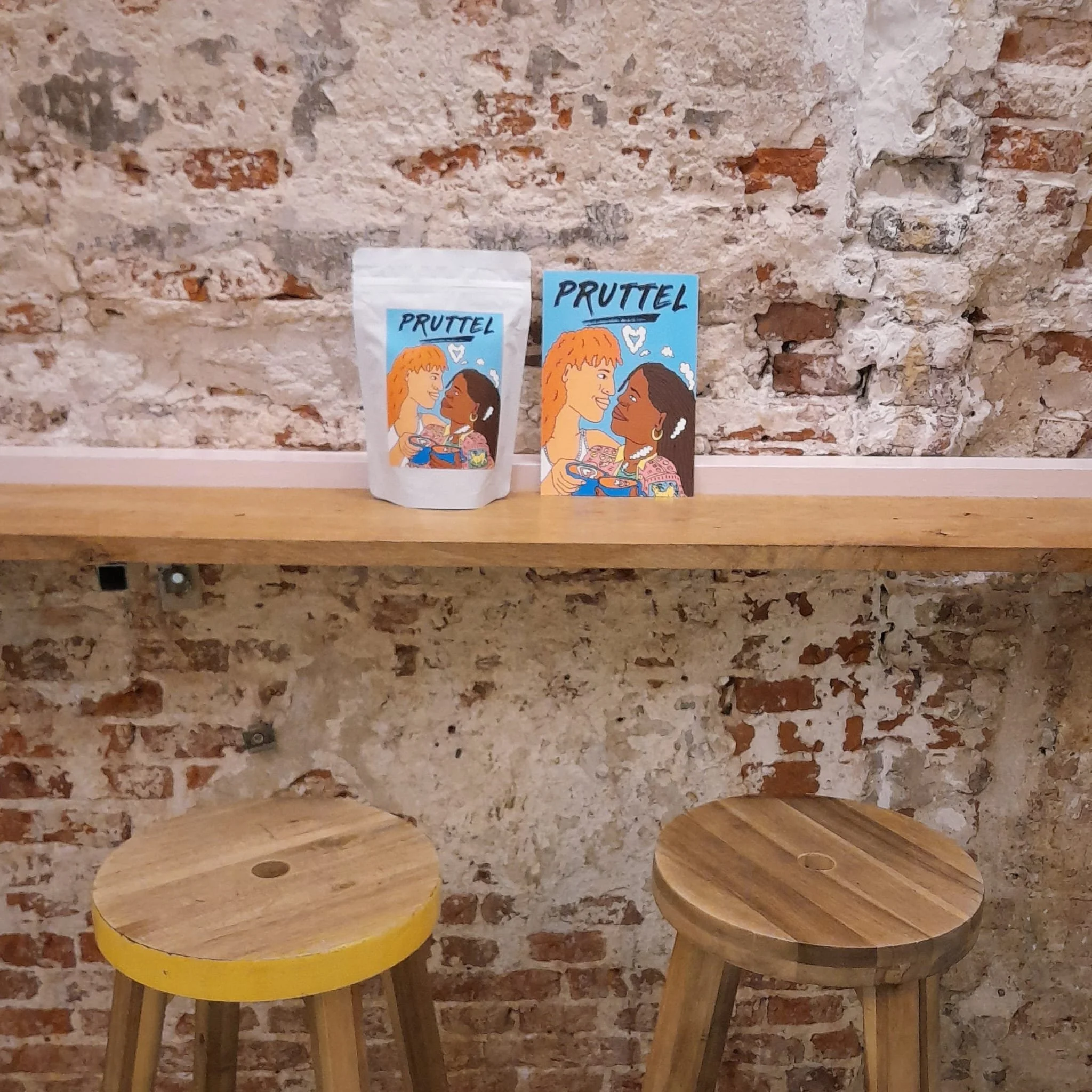Pruttel Koffie is a specialty coffee brand. They offer artist an opportunity to use their bags as a canvas for their work. Pruttel Koffie invited me to make an illustration for one of their bags. This one is called ‘Coffee Date’, which I found my inspiration for in my personal daily life.
