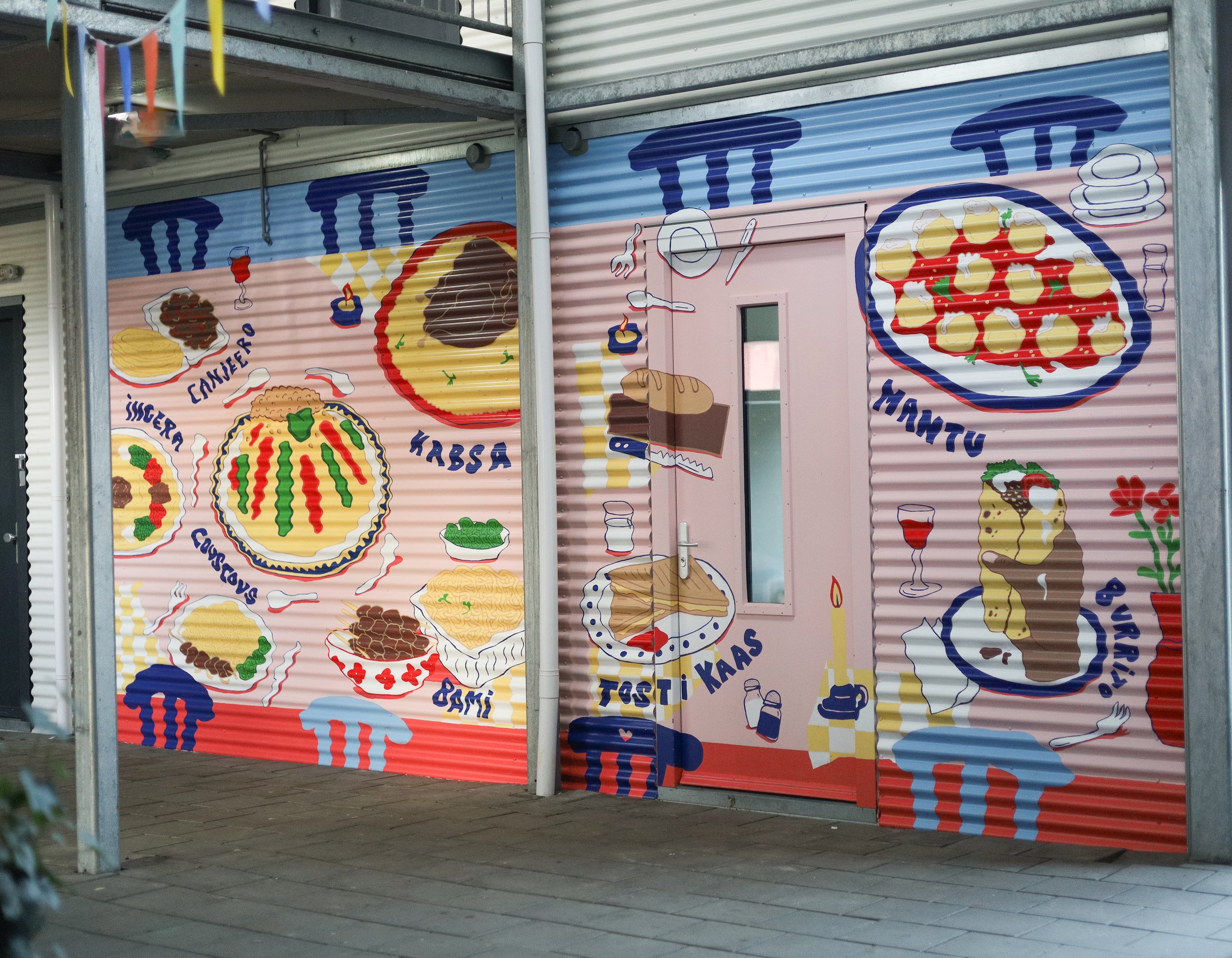 Conversations with residents about their favorite food and feelings of home where the starting point of this mural. Together with Lynn Smit I translated these conversations into two murals.